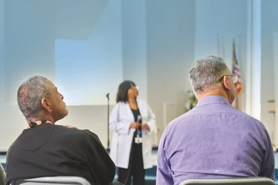 Dr. Friedman has been leading health education classes for the men in the URM Christian Life Development Program on topics such as diabetes, heart disease and Hepatitis C—with positive results. “Recently, I was able to inform the attendees about a study for a new Hepatitis C drug they might be eligible for that was going on across the street. Several of the men have enrolled and are very pleased to be receiving treatment.”