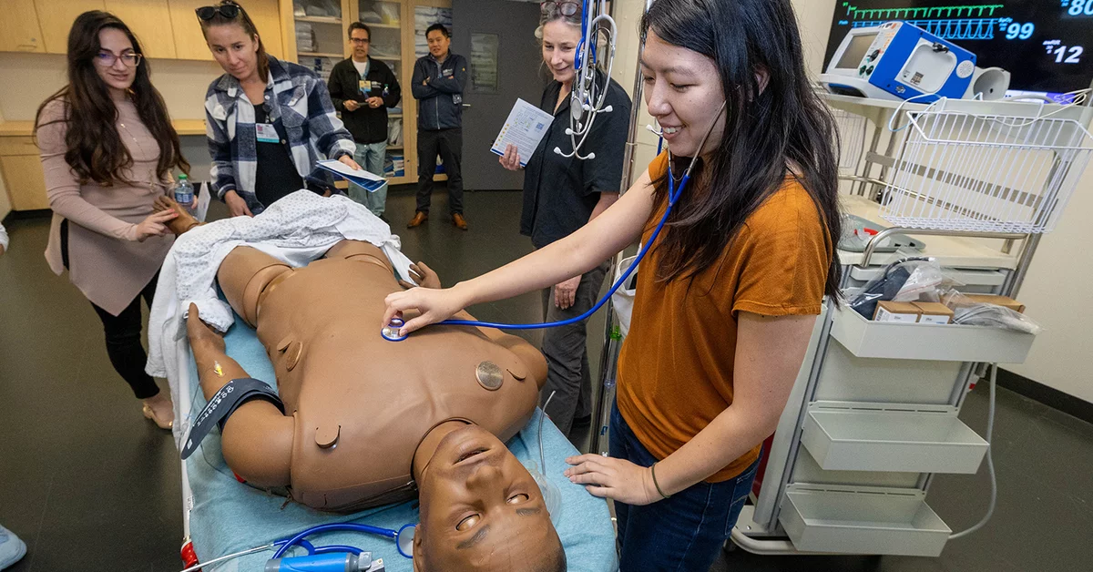 But perhaps the most striking feature at Rosenfeld Hall is the computerized patient simulator in the form of a lifelike male manikin. Nina Do, a simulation specialist with the medical school’s dean’s office, highlighted the value it brings to medical education. The manikin “can replicate a wide range of clinical scenarios, allowing learners to interact with a responsive patient model,” she said. Students can make real-time decisions, receive live feedback, and learn from their mistakes in a low-stakes environment. This hands-on experience complements their standardized patient training, Do added.